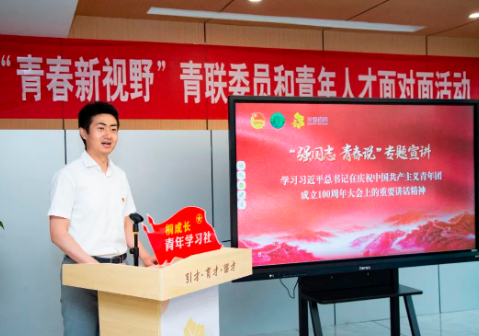 徐彬和大家一起重温习近平总书记给南京大学留学归国青年学者回信原文,宣读了市委人才工作领导小组办公室围绕学习贯彻习近平总书记重要回信精神提出的“深刻认识重大意义”“认真组织传达学习”“切实加强宣传引导”“不断增强学习实效”四点要求,强调广大青年要心系“国家事”、肩扛“国家责”,为加快推进新时代人才强市建设,奋力推进“532”发展战略作出更大贡献。 市青联常委、区青联主席、团区委书记陈俊玮围绕习近平总书记在庆祝中国共产主义青年团成立100周年大会上的重要讲话精神作专题宣讲。