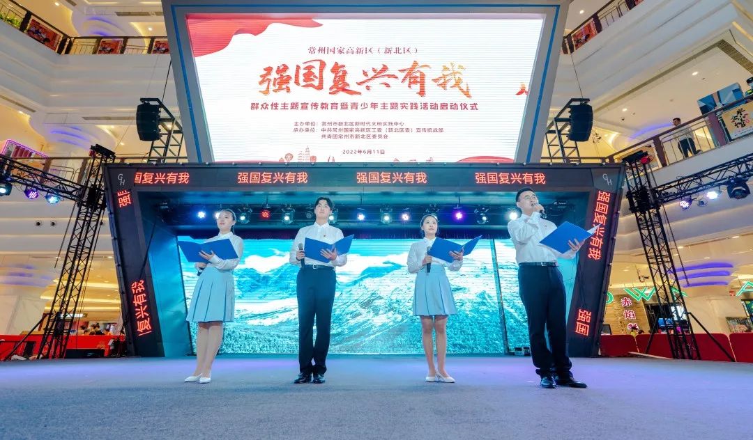 6月11日下午,常州国家高新区(新北区)举行“强国复兴有我”群众性主题宣传教育暨青少年主题实践活动启动仪式,组织和动员全区广大干部群众凝聚思想共识,唱响主旋律、传播正能量、奋进新征程,为党的二十大胜利召开营造浓厚的社会氛围。