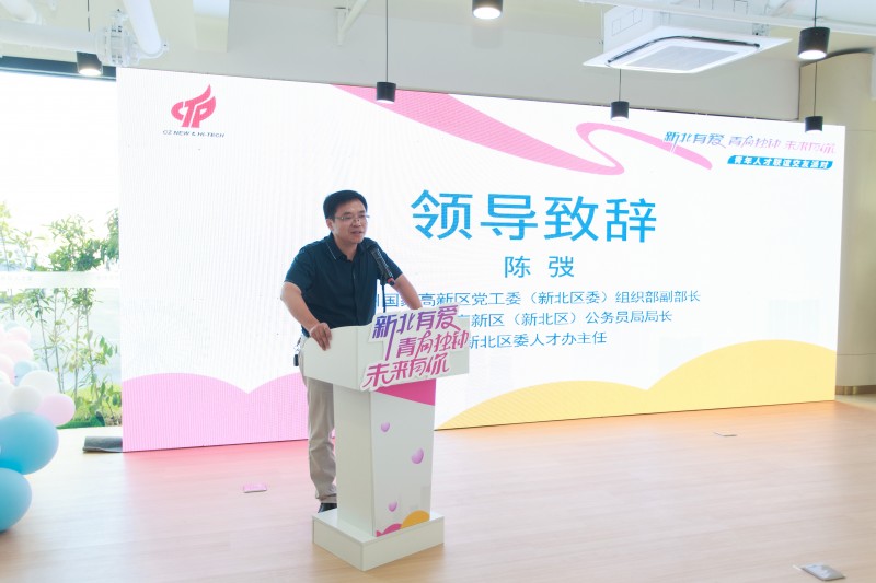 区党工委(区委)组织部副部长、区公务员局局长、区委人才办主任陈弢在致辞中分享了他的个人爱情故事,引起了现场青年的共鸣。