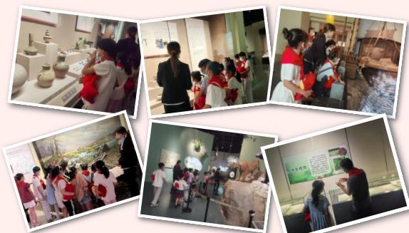 参观学习,爱在引领。第二站是常州市博物馆。队员们在讲解员的带领下首先走进位于一楼和二楼的历史博物馆,通过一件件展品了解常州悠久的历史,了解社会是怎样一步步发展起来的。这些常州的文物精品彰显着地方文化底蕴,让队员们大开眼界。位于三楼的少儿自然博物馆是队员们最喜欢的,展示内容主要分为“地球生命的进化故事”“纷繁多样的美丽自然”“形形色色的动物世界”“秀丽多姿的故乡大地”四大部分。整个展厅通过科学的设计和现代化的展示手段,各类静态的自然标本与其环境完美融合,再加上多个互动性项目的设置,显得生机勃勃、富有情趣。队员们沉浸其中求知探索,充分认识大自然,增长了见识,也激发了保护大自然的情感,可谓收获多多。