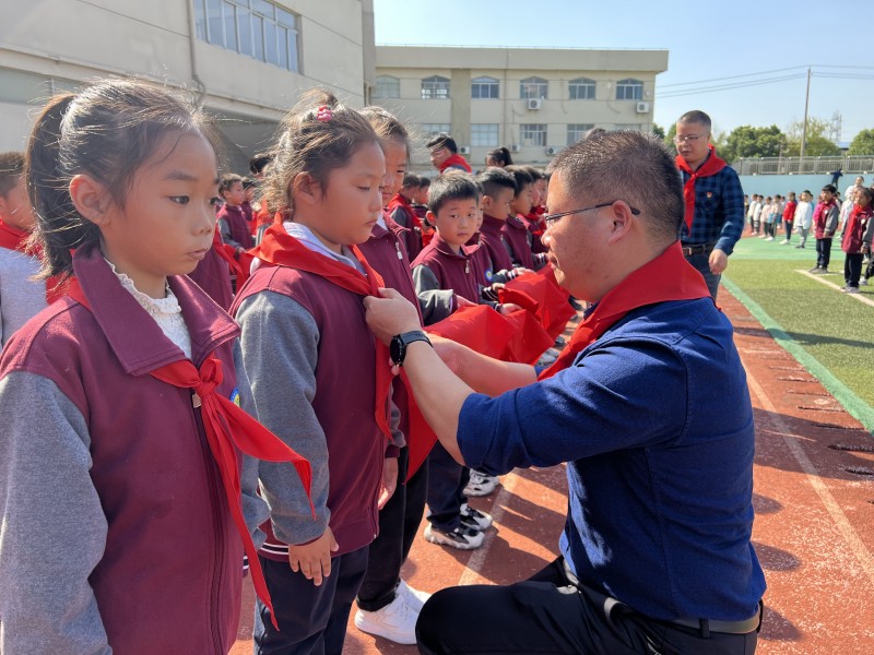 我入队,我光荣。百草园小学举行了第二批新队员入队仪式,153名新队员们在区少先队总辅导员王瑛的领呼下光荣地加入了中国少年先锋队,新队员们用深情的朗诵《红领巾》表达他们激动的心情和争做新时代好队员的决心。 吕墅小学的入队仪式上,党员教师为第二批新队员们系上了鲜艳的红领巾。红领巾就如一粒红色种子,从党员同志手里传递到了队员们的心中,激励他们秉承红领巾的精神,不断努力,砥砺前行。河海实验小学、泰山小学、龙城小学、薛家小学、小河小学、浦河实验学校、九里小学等学校也在建队日这一天举行了第二批新队员入队仪式。入队是一次启航,也是一次理想信念的传递,怀揣红色梦想,高举队旗跟党走。