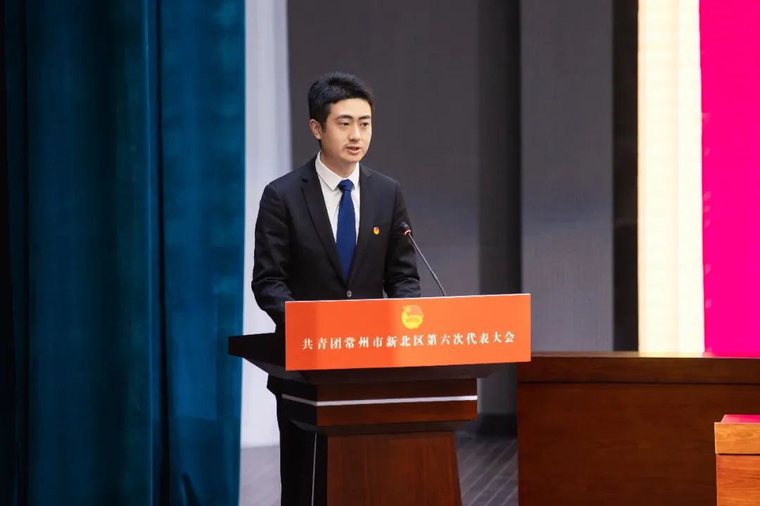团区委书记陈俊玮代表共青团常州市新北区第五届委员会向大会作题为《高举团旗跟党走 踔厉奋发谱新篇 为高新区现代化建设贡献青春力量》的工作报告,回顾了五年来新北共青团的青春足迹,分析了当前肩负的责任使命,研究确定了未来的目标任务,鼓励青年奋勇拼搏,彰显青春。