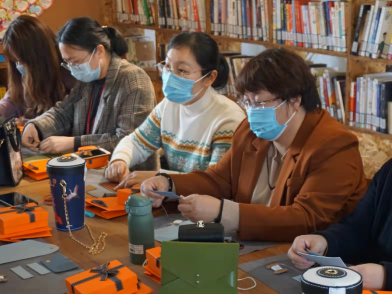 阳春三月,万物复苏。在第112个“国际妇女节”到来之际,西夏墅镇行政审批局联合镇妇联、团委、总工会、政法和社会综合治理局走进美丽乡村梅林村委,在秋白书苑匠心铺分馆举办了一场“书香伴芳华 最美妇女节”的主题活动。 手工皮具是技艺的展现,是文化的传承,是历史的积淀,更是每个匠人执着的信念。活动中,手工老师一边详细地讲解卡包的制作过程,一边拿着制作材料向大家展示,并提醒大家制作卡包的要点和难点。前来参加活动的女职工挑选各自喜欢的样式,跟着老师的示范动作,按照步骤动手操作,遇到不懂的问题就会主动老师请教,活动氛围十分融洽。不一会儿,一个个漂亮的手工卡包在大家的巧手中诞生,大家拿着制作的作品相互欣赏,交流经验,脸上满是喜悦和成就感。
