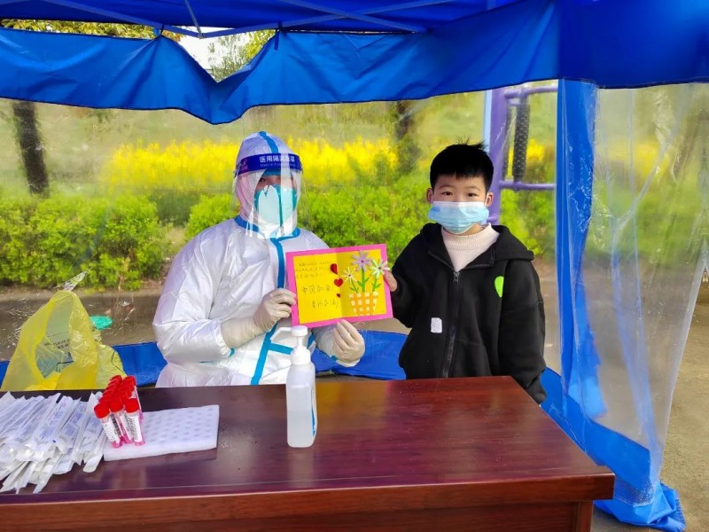 连日来,在孟河镇的疫情防控一线有无数的工作人员和志愿者坚守在岗位,共同筑起疫情“防护墙”。同时,还有一群人在后方为战“疫”加油鼓劲鼓舞“前方战士”为防疫一线注入一股暖流。 停课“宅”家期间,常州市新北区孟河中心小学的师生们共同编排了手势舞《燎原四方》,用别出心裁的方式,为奋战在一线的基层抗疫工作者和志愿者加油助力,坚定抗击疫情的决心和信心。 “白衣天使们辛苦了,我想把这个送给你们!”3月23日,荫沙村、润江村、九龙村的核酸采样现场收到了一张张小朋友们亲手绘制的感谢贺卡。孩子们充分发挥了自己的艺术特长,以真情实意勾勒出一幅幅有爱的画面,献礼白衣天使。手捧着孩子们澄澈的真心,医护人员十分激动感慨。“看着这些可爱的文字,我们心里真的特别暖,这是对我们工作的肯定,也让我们有了更大的动力。”