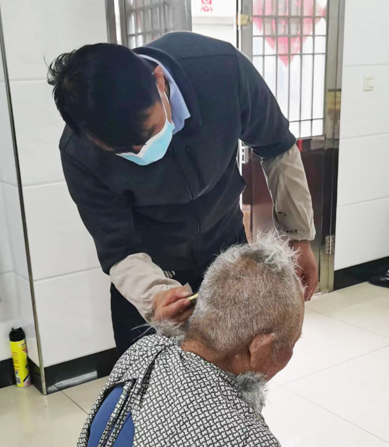 根据疫情防控工作要求,西夏墅镇敬老院实行封闭管理,理发师无法进入,五保老人们遇到了理发难问题。为解决老人们的“头”等大事,4月14日,西夏墅镇敬老院工作人员张建峰“变身”理发师为有需求的五保老人理发。张建峰说:“以前在部队里战友相互剪头发,学了一点理发技巧,没想到还真用上了。这点小事不算什么,我想在能力范围内给他们提供尽可能多的贴心服务,让他们老有所养、老有所乐!”