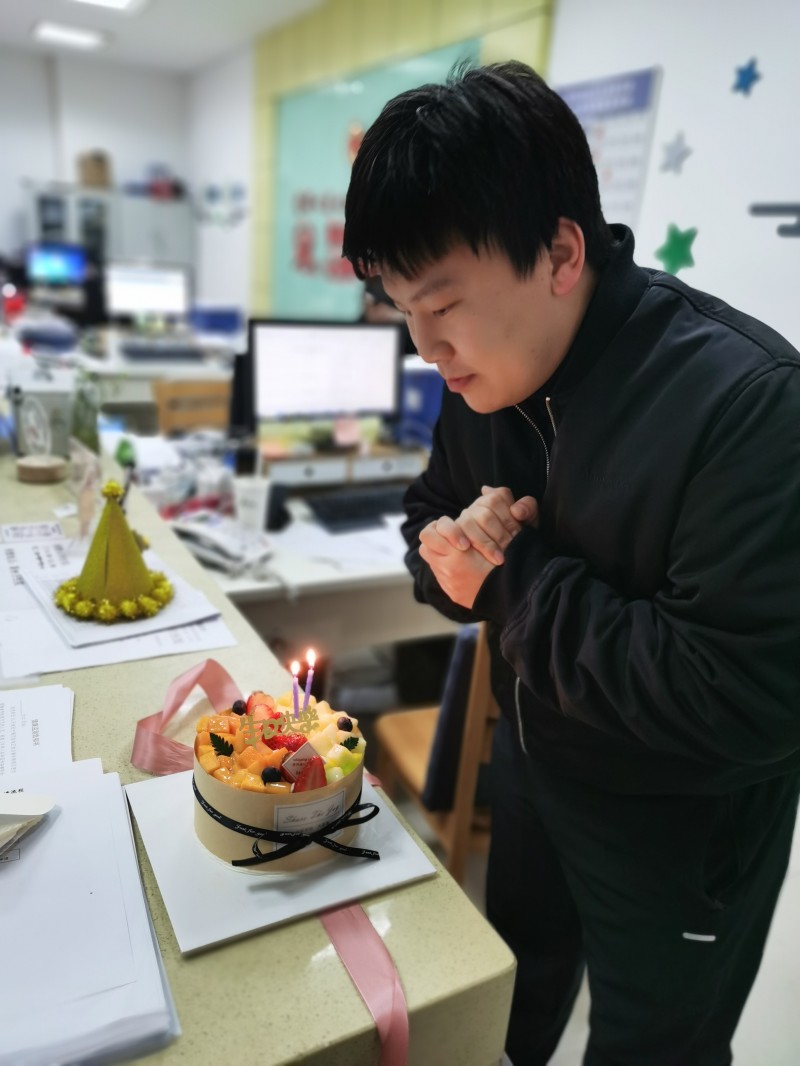 有一个日子,一年一度,对每个人来说,是一年中属于自己的、最美好的节日!从不延期也不提前,它就是:生日。 “许个愿:疫情早日结束!”5月11日,望湖社区居委会副主任高超在战“疫”一线度过了自己31岁的生日,特殊的日子,特殊的战位,这已是他第二次过“特殊生日”! 前段时间,常州疫情突袭而至,如今上海疫情席卷而来,看着天天加班到凌晨的他,书记高志青看在眼里,记在心里,提早和社区同事一起准备好了生日蛋糕。防疫2年以来,他始终坚守在岗位,2年里,哪里有情况,哪里就有他的身影,作为望湖“星青年”疫情特战队“老兵”,他主要负责社区疫情防控的人员管理、隔离转运、返常报备、报表统计、信息报送等工作,为了能准确及时地报送各类信息,经常“5+2”“白+黑”,一说到休息,他总说:“疫情不退,我必在前!”自3月中旬以来,高超已累计接待、报备涉疫居民119人,其中上海返常28人,均已按防控要求为每位居民开展居家隔离、上门采样核酸、专人送菜送药等工作。疫情终有时,春暖花自开,让我们为“疫”线的战友道一声“生日快乐”