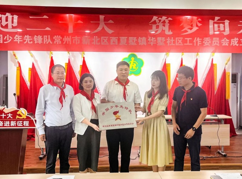 少年儿童是民族的未来,国家的希望,少年儿童的健康成长离不开社会各界的关心与照顾。为了最大限度地联合家、校、社三方力量,给少年儿童提供激发品德与社会性发展的多样平台,9月15日下午,中国少年先锋队新北区西夏墅镇华墅社区工作委员会正式成立。华墅社区党总支书记、居委会主任季云飞,西夏墅中心小学党支部书记、校长王芳,西夏墅镇团委书记季李睿,西夏墅中心小学德育副校长巢卫国,华墅社区老年协会会长,社区代表,西夏墅中心小学少先队员代表、辅导员代表,以及西夏墅优秀企业家代表等人参加了本次成立仪式。 本次活动是为深入贯彻习近平总书记关于少年儿童和少先队工作的重要论述,推动新时代少先队组织改革创新,更加有效地凝聚和引导广大青少年儿童参与社会实践和社区治理,构建“学校+社区+家庭”的新模式,华墅社区党总支书记季云飞表示,将以社区少工委的成立为新的契机,充分利用辖区内丰富的红色资源与人文资源,继续与西夏墅中心小学联合开展各项活动,促进青少年儿童身心健康发展。西夏墅中心小学大队辅导员刘新怡陈述了校外少工委成立的意义与迫切性。西夏墅镇团委书记季李睿表示,镇团委将大力支持青少年的各项组织工作,对中国少年先锋队常州市新北区西夏墅镇华墅社区工作委员会的成立寄予期望。西夏墅中心小学校长王芳表示,西夏墅中心小学将继续与华墅社区合作共赢,在今后的社区工作中,西夏墅中心小学将进一步关注少年中的特殊群体,特别是外来务工人员子女及特殊贫困青少年等特殊群体,使他们能在社区和学校的关怀下健康成长。