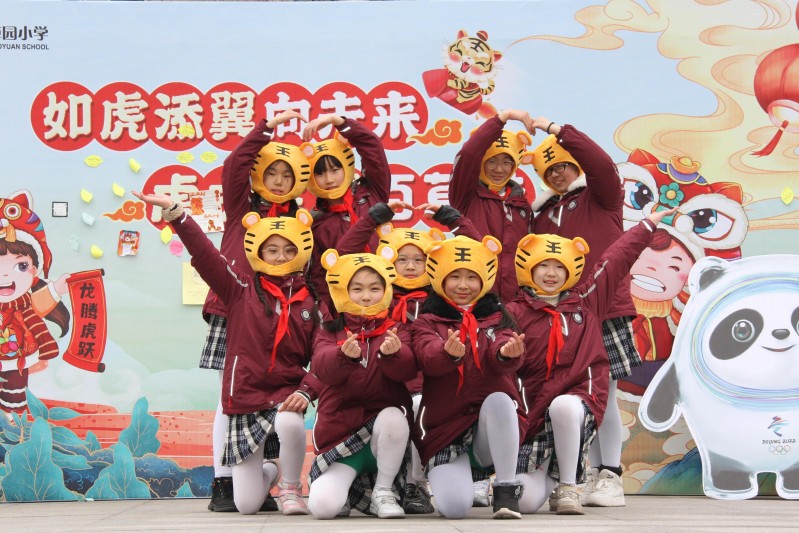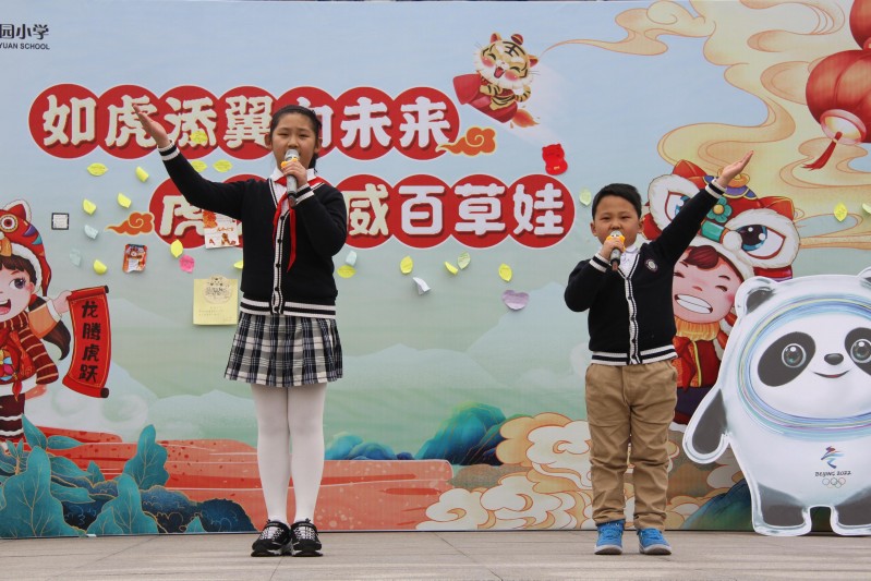 2022年2月14日下午,带着对寒假生活的完美记忆,带着对美好未来的无限憧憬,百草园小学的全体辅导员和队员聚集在操场,隆重举行“虎虎生威百草娃 如虎添翼向未来”为主题的开学典礼。典礼在全体百草娃萌萌的开场舞《糖果屋里的小老虎》和庄严的升旗中拉开了帷幕。