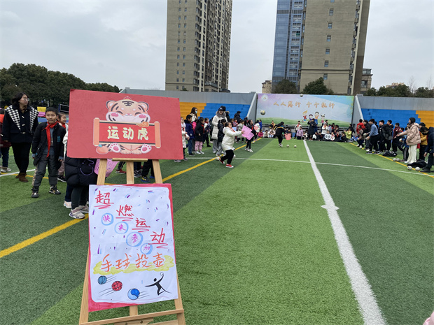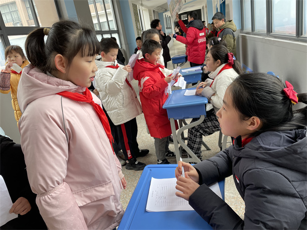 “天天跳绳APP你知道吗?”“那当然了,每个队员都参加了天天跳绳打卡呢。”“我们督导员老师天天和我们一起运动,我们的身体都棒棒哒!” 混融式学习博览会里,少不了一年级小可爱的活泼身影,他们满怀喜悦,以饱满的热情迎来了跳绳小达人活动。初春的体育馆里,充满着孩子们朝气蓬勃的加油呐喊声。六年级大哥哥大姐姐大手牵小手,边记录边默默加油! 活动初始袁督导员细致地为大家讲解古代投壶的小知识,今天我们玩的是香槟版的“手球投壶”,大小朋友跃跃欲试。游戏环节在投中时的鼓掌声、擦边未中时的惋惜声还有加油与出谋划策的声音中结束了第一轮。在第二轮游戏中,队员们吸取第一轮的经验,或调整身体前倾的角度、或更换不同的站立姿势、或调整球角度来进行投掷。