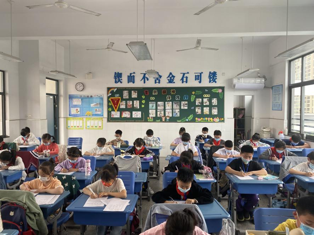 测验在4月21日由备课组进行方案公示,22日中午12点10分到30分进行,各班安排监考老师提前领卷,组织学生准时开始书写。模拟测验中,各班学生都专心致志、认真严谨地书写每一个字,卷面整洁美观、字迹娟秀工整,展示了学生们优秀的书写素养。