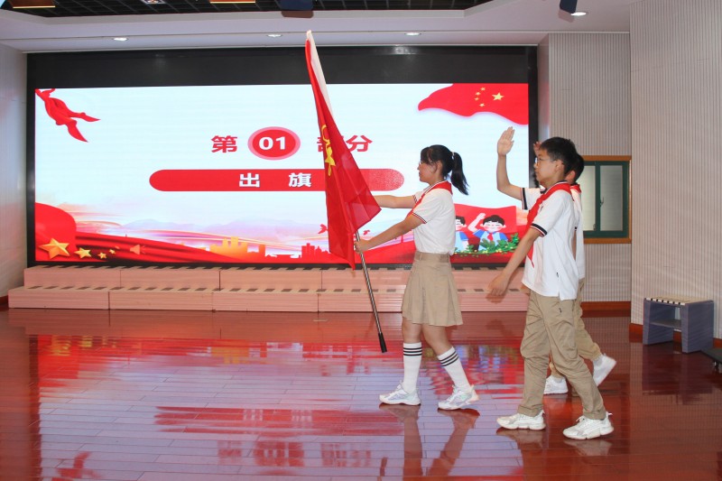 庄严的出旗曲拉开了入队仪式的序幕。大队旗手们踏着整齐的步伐,护送队旗向前迈进。在鲜艳的队旗下,百草娃们高声齐唱《中国少年先锋队队歌》,一张张稚嫩的脸庞掩盖不住内心的激动,一声声嘹亮的童声充盈着对未来的信心。