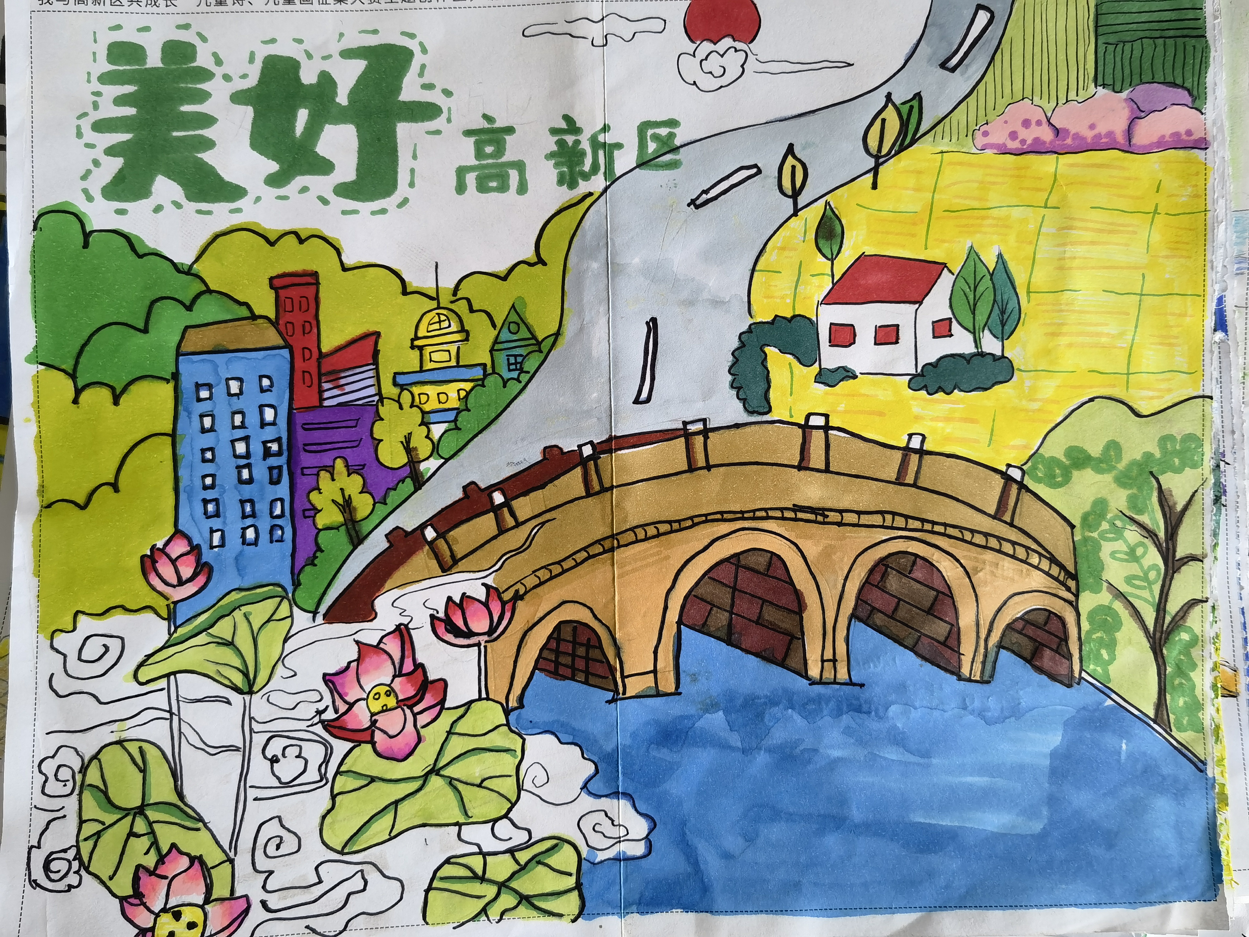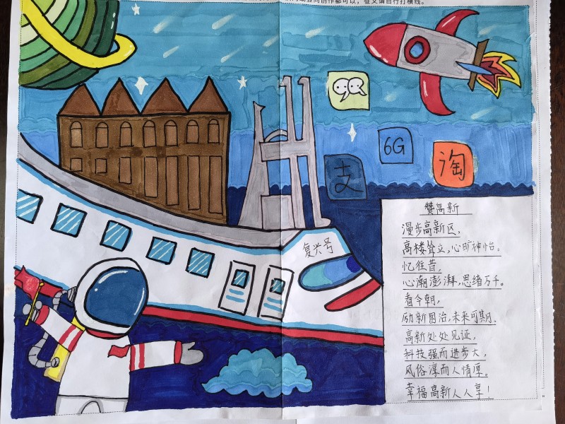 童眼看新北,美丽百分百。三井实验小学的少先队员们用画笔勾勒家乡的变化,用文字抒发内心的热爱。行政中心、文化广场、中华恐龙园、美丽校园……身边的一草一木、一物一景都是家乡变化的印证。