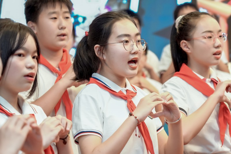 随后,各中队用精心准备的节目,最后一次为母校献礼。六年级的百草少年们用动感十足的热舞串烧点燃了全场,尽显青春的活力与朝气。辅导员和队员合作的深情朗诵《我们的幸福》让六年来所有书香浸染的校园生活化作永恒的记忆;六(1)中队的合唱《勇气》诉说着离别的忧伤和无尽的祝福;六(2)中队的手势舞《孤勇者》掀起了台上台下同唱的热潮;六(3)中队的歌舞《萱草花》满怀着彼此间深深的眷恋。歌舞声中,积淀着浓浓的离别情。