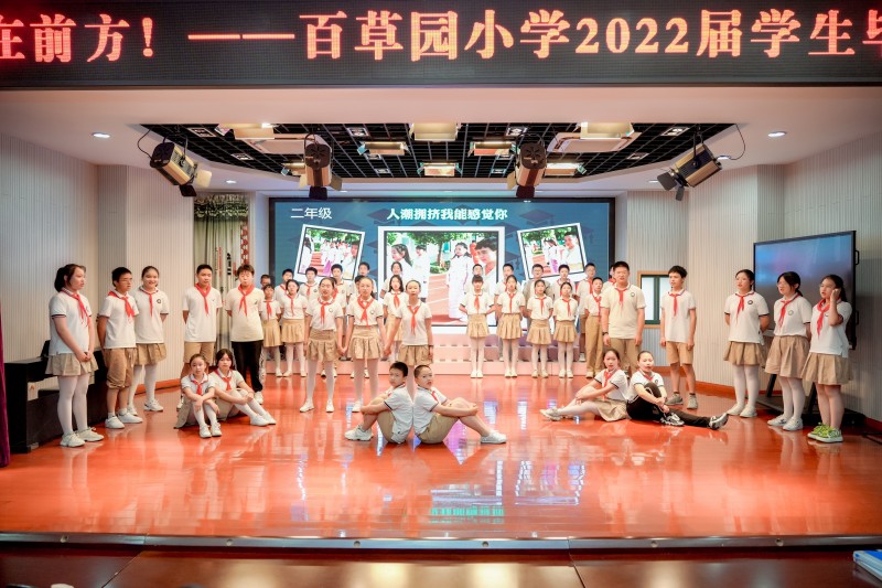 六月,芰荷初开,离歌响起。6月28日下午,百草园小学“飞吧,梦在前方”2022届六年级毕业典礼在四楼报告厅隆重举行。伴随着“百草Beyond”乐队带来的充满激情的《真的爱你》开场音乐,典礼拉开了序幕。