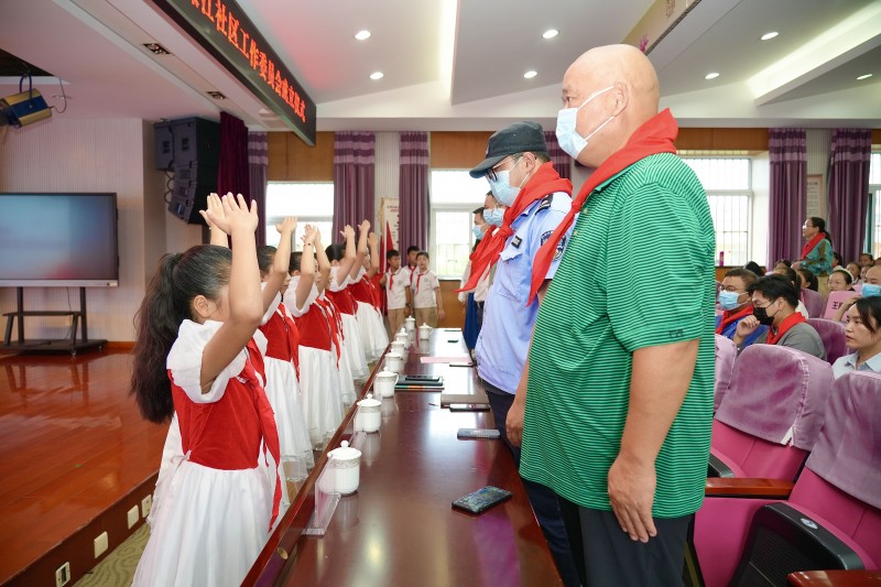 藻江社区居委会党总支书记谢孟同志在讲话中表示,藻江社区少工委将以此为契机,带领社区少先队组织整合社区、学校及周边党建企事业单位的红色资源,发挥党员、团员力量,为新时代少年儿童提供茁壮成长的沃土,让社区成为“双减”后少先队员的成长乐园。