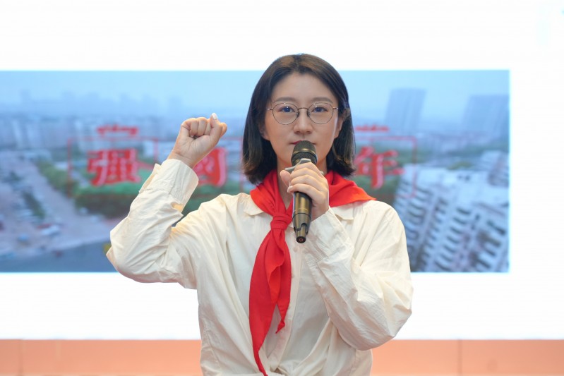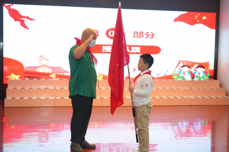 曾参与过中越自卫反击战的退伍老兵严卫平同志为社区少先队授予了大队旗。满怀信心地接过火红的队旗,新当选的社区大队长恽宇辰表示一定会牢记历史,带领全体百草娃让队旗在社区飘扬,让胸前的红领巾更加鲜艳,让党的红色基因代代相传。来自六(1)中队的大队委陈雨珂还分享了暑期校外实践活动的丰硕成果,并表示今后会积极参与校外实践活动,在活动中砥砺品格,增长本领,成为一个德智体美劳全面发展的新时代好少年!