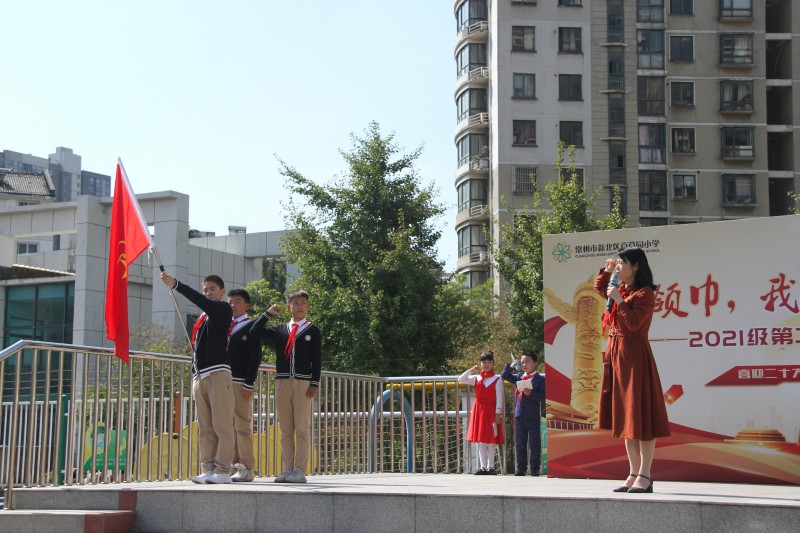 仪式上,少工委副主任芮正华副校长做了重要讲话,向新队员发出祝福和希望。最后,全体少先队员在新北区少先队总辅导员王瑛的带领下发出呼号,铿锵有力的呼号声响彻校园,入队仪式在退旗曲中结束。