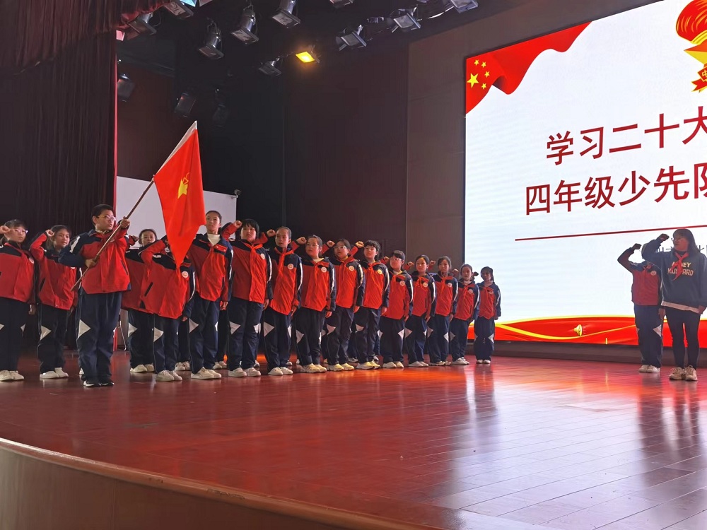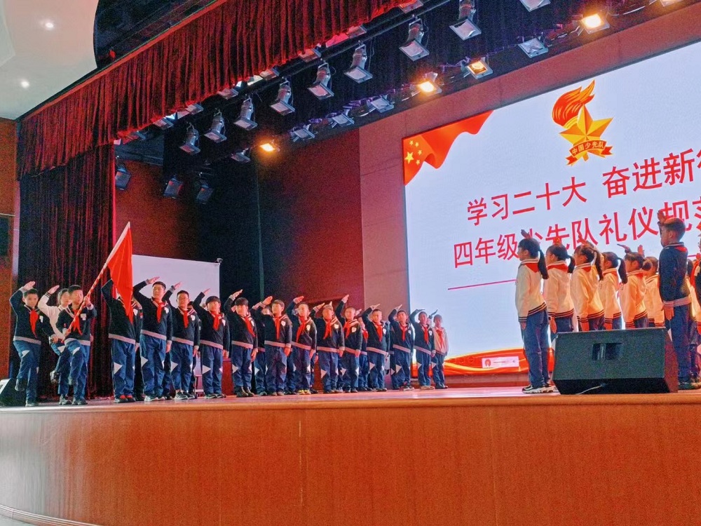 为了全面学习习近平总书记在中国共产党第二十次全国代表大会上的讲话精神,提升少先队礼仪的内涵,丰富少先队员的队生活,增强少先队员的光荣感和使命感。近日,奔牛实验小学举行了四年级“学习二十大 奋进新征程”主题队活动仪式评比活动。