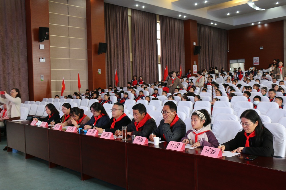 队仪式在庄严的出旗曲中拉开帷幕,旗手和护旗手踏着整齐有力的步伐高举队旗,队员们敬队礼,并向队旗行注目礼。铿锵嘹亮的队歌声响彻整个报告厅,展现出奔小队员们积极饱满的精神面貌!新征程的号角已经吹响,辅导员们带领全体队员呼号:准备着,为共产主义事业而奋斗!队员们激情昂扬地回答:时刻准备着!12个中队都呈现了精彩的少先队礼仪,评委们纷纷为他们点赞!