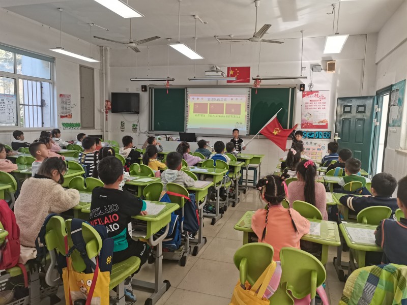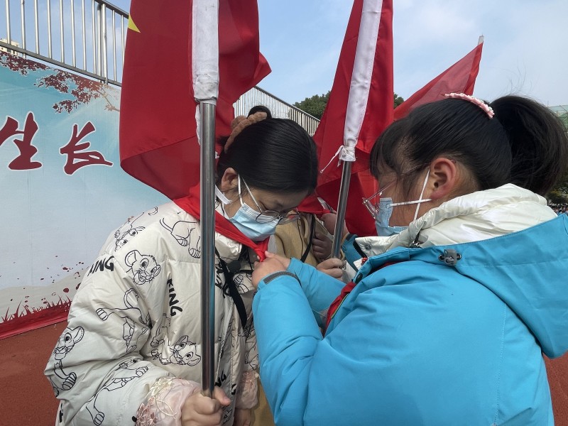我们的队旗高高飘扬,星星火炬闪耀着金光。辅导员老师是少先队员们在学校中联系最紧密的人,小小少先队员们的成长离不开辅导员的指导与帮助。少先队员代表为中队辅导员授旗,并为辅导员们佩戴鲜艳的红领巾。