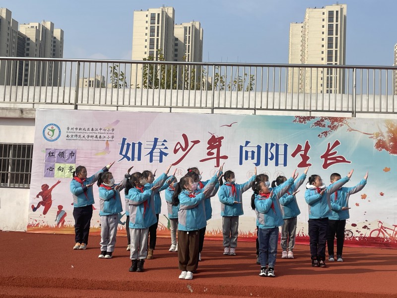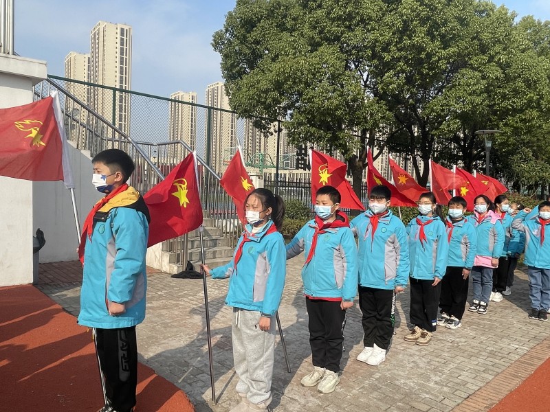 鲜艳的领巾,映红我们稚嫩的脸庞。火红的队旗,带领我们大步前进。少先队,那是我们温馨的精神家园,也是我们健康成长的摇篮。12月12日,春江中心小学开展了以“红领巾心向党”为主题的新队员入队仪式,一年级110名新队员光荣地加入了中国少年先锋队。 队前教育。为加强同学们对少年先锋队的了解,增强组织荣誉感和责任感,一年级中队辅导员提前进行了队前教育,在“队前教育”队会课上,同学们也更加明确了加入中国少年先锋队的意义,了解了少先队知识,会写入队申请、佩戴红领巾、宣誓、敬队礼,以及唱队歌。