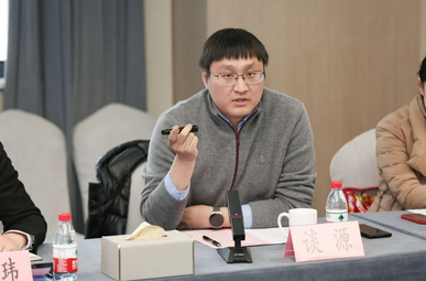 区青联副主席、新创碳谷集团有限公司总经理谈源作主旨分享,他向大家介绍了集团基本情况、发展规划,并交流了个人对会议精神的学习感悟。