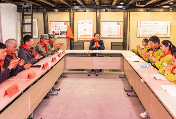 在中共西夏墅支部旧址一一同福茶馆,少先队员们和现役军人、退役军人代表一起聆听烈士的英雄故事,感受烈士的历史印记。 "追忆英雄迹”座谈会上,雨棠和妻子李文烈士手挽着手,坚定走向刑场从容就义的英雄气概和大无畏精神,让每位少先队员都感受到了革命先辈用生命写就的红色浪漫,懂得了要珍惜这来之不易的金色童年。