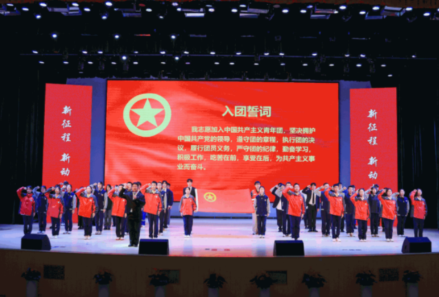 来自新桥初中、新桥高中、常州工学院和社会领域的新发展团员代表和现场团员青年共同重温入团誓词,为广大团员青年的成长和发展提供强大的思想源动力。