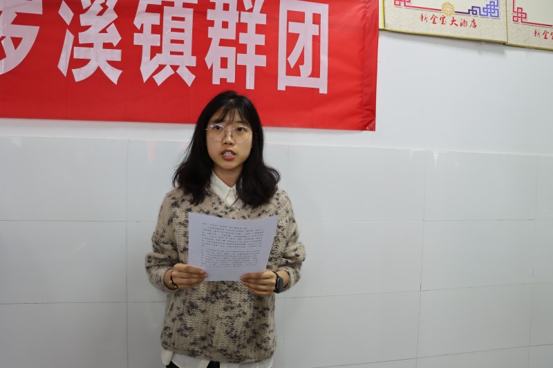 青年团员代表周祖晗讲述了青团的由来。晋文公把清明节的前一天定为寒食节,在这一天只能吃冷食,青团就是一种。后来因为寒食节与清明节时间较近,吃青团就逐渐成为清明节的一项习俗并代代流传。