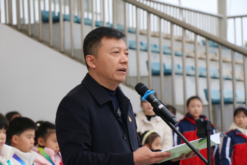 杨文荣校长致辞,送给少先队员们三句话,第一句话:腹有诗书气自华;第二句话:梦想不会发光,发光的是追梦的你自己;第三句话:最美好的不是未来,是今天。奔牛实小的新绿少年,新的一年如期而至,新征程新期盼,新目标新希望,积蓄所有的力量,热情地去开启崭新的2023年,用一片新绿去点缀这烂漫而又美好的春天。