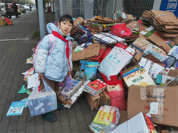 该校一千多名队员利用放学时间,与爸爸妈妈一起收集用过的作业本、课本、家里的废旧报纸和包装箱纸板等,每位队员携带6斤左右的废纸,在爸爸妈妈的带领下、辅导员的引导下,井然有序地将废纸摆放在指定区域,让废纸去到它们的新家。