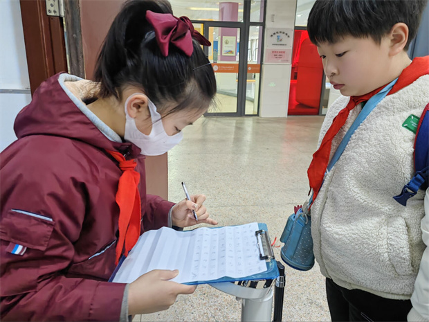 护脊小卫士们带着手中的数据、统计出来的图表找到了队员发展中心的潘部长,向她提出倡议,开展“书包‘瘦身’”的活动。 班队课上,辅导员老师带领队员们观看护脊小卫士们录制的“轻轻我的小书包”视频,队员们体验实践后进行交流归纳,举办班级“书包整理大pk”活动,拥有了适合自己的整理书包小窍门。