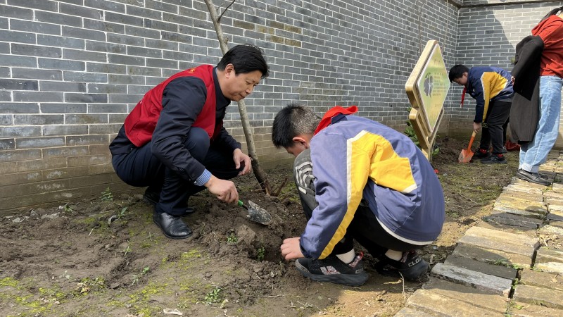 为深入学习贯彻党的二十大精神和习近平总书记关于学雷锋志愿服务的系列重要指示精神,3月10日上午,孟河中心小学五1雷锋中队在孟河镇关工委常务副主任林德芳、孟城社区党总支书记周涛、社区全体干部的带领下,前往巢渭芳故居中草药劳动实践基地,开展“春暖三月学雷锋 植树添绿守初心”学雷锋义务植树志愿服务活动。 在社区志愿者们的引领下,队员们热情高涨、干劲十足、分工明确、配合默契。有的挥锹挖坑、有的扶苗培土、有的踩实固苗、有的撒水浇灌,每个步骤都循序渐进、认真细致,现场呈现一片热火朝天的劳动景象。