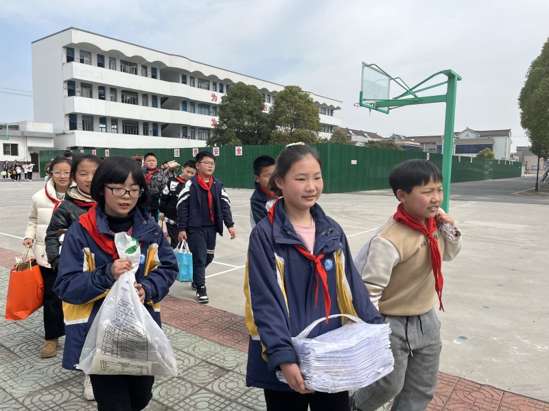 中午时间,师生协力完成捐废纸活动。看着队员们踊跃参与的样子,仿佛就是那一棵棵幸福成长的小树,沐浴着活动的阳光雨露茁壮成长。“这次活动,让我们了解了纸张的制作过程,认识到地球资源的宝贵,懂得了怎样变废为宝。用日常生活中收集到的6斤废纸,就能换一本崭新的家校联系本,督促我们把环保和文明放在心间,真的非常有意义!”拿到今年的家校联系本后,中医娃们欢呼雀跃。 孟河中心小学“学习雷锋好榜样 绿色环保我先行”活动圆满落幕,卡车载着队员们满满的爱心驶向远方。中医娃们将继续用自己的双手绵延绿色的希望,铺设环保的道路,播撒学雷锋的种子。长期以来,孟河中心小学始终坚持绿色环保教育,学校将进一步丰富活动内涵,为种好常州幸福树而努力,为全面推动各项事业高质量迈进新时代而不断奋斗。