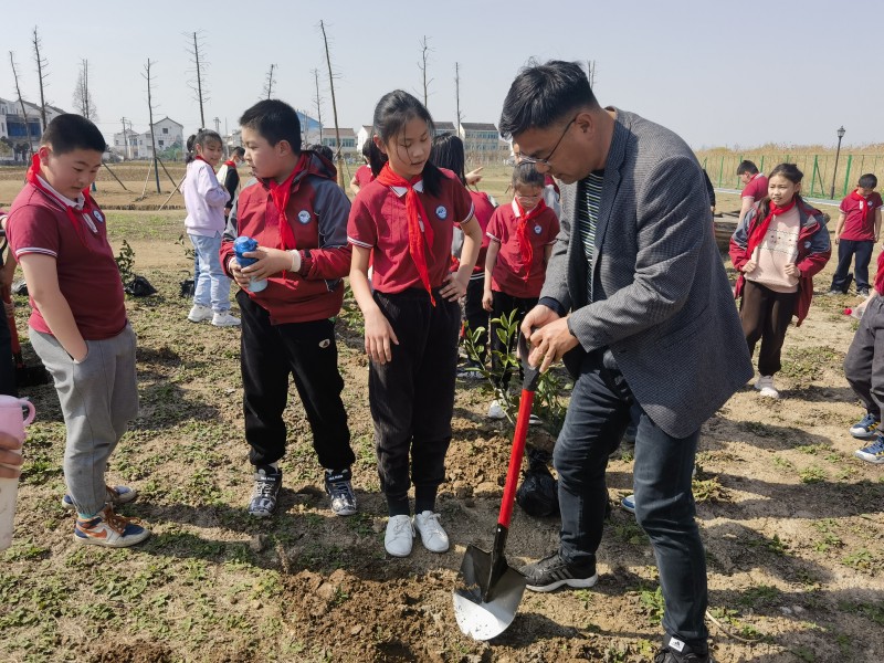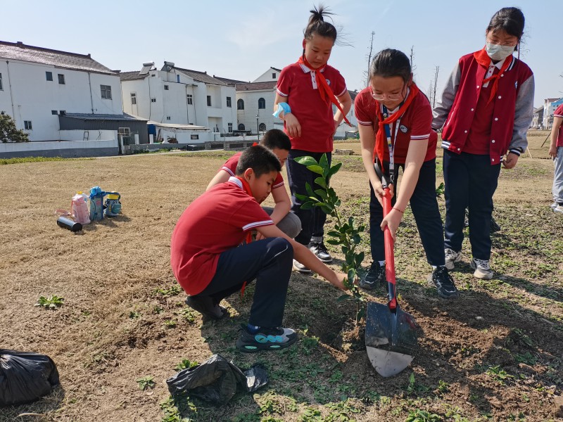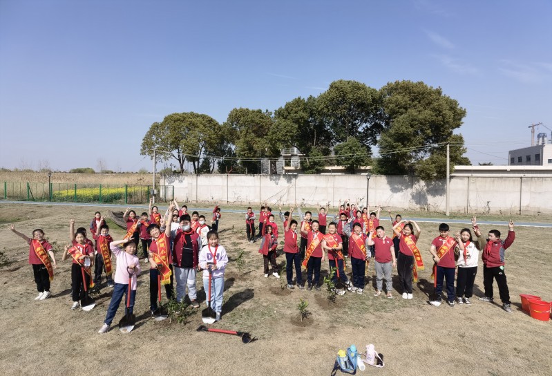 下午一点,风和日丽,天气非常晴朗,魏小的少先队员们踏一路春风,洒一路欢笑,赏一路春色,一起来到长江边的德胜岛。红的黄的花,青的草,绿的苗,明媚的春光染绿了队员们的小手,小铁锹叮叮当当奏响了植树的歌谣。都说老师是园丁,学生是幼苗,今天,队员们就是一个个小园丁,精心培育幼苗。队员们四人一组,分工协作、配合默契。先是领了树苗和铁锹、水桶等工具,然后寻找一块最佳种植地,用铁锹在地上挖了一个个大约30厘米深的树坑,并清理完树坑内的石块。树坑挖好后,队员们小心翼翼将小树苗垂直放入坑里,一位队员扶正树苗,其他队员则往树根上覆土,用脚把土踩紧。