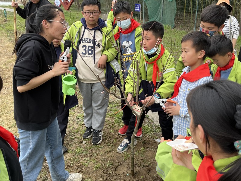 接着,在工作人员的指导下,队员们进一步修剪自己的小树苗,呵护小树苗的生长。种植结束,队员们认领了自己的小树,在养护牌上写上了自己的姓名、种树的时间以及春日寄语,小心翼翼地悬挂在树上,一起守护新绿,期待小树苗快快长大!