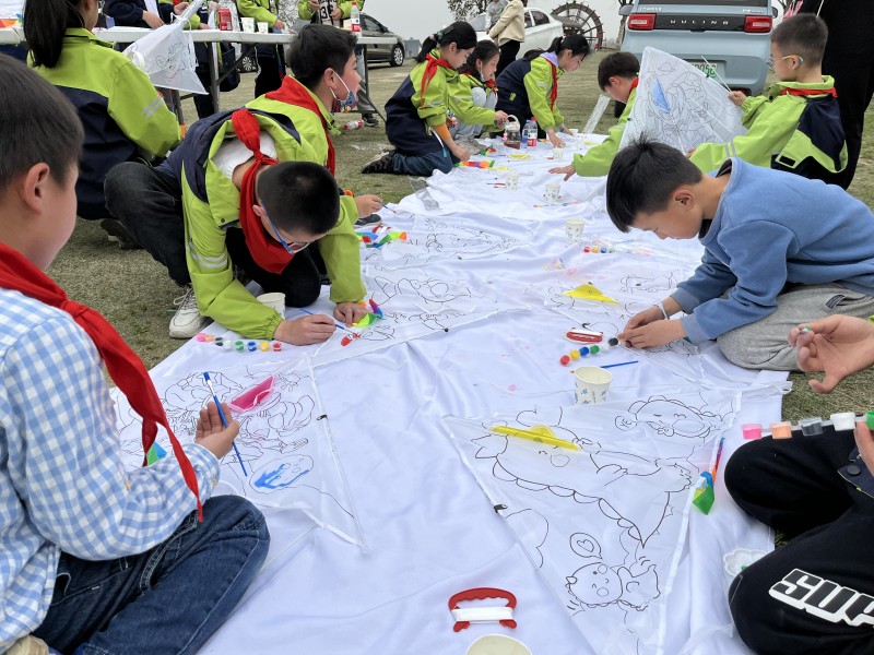 春风拂面,在微暖的春日,队员们还参与了纸鸢放飞的活动,大家充分发挥想象力和创造力,在白底的风筝上用五彩的颜料绘出属于自己的DIY纸鸢。试飞,改进,在一次次努力中队员们一起在草地上奔跑,把会有自己梦想的纸鸢放飞空中,美好在春天如期而至。