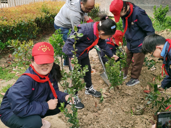 为进一步加强队员的劳动实践能力与生态环保意识,引导队员养成爱绿护绿、讲究卫生的文明行为,三井实验小学五(10)中队开展了绿种子微公益活动,小手携大手,共护一片绿。 三井实验小学五(10)中队的少先队员们在辅导员刘诗思老师和朱清老师的指导下,组织开展了以共“植”一抹绿,一起“森”呼吸为主题的植树活动,让全体少先队员们在活动中树立绿色理念,提高环保责任意识,体会劳动之美。