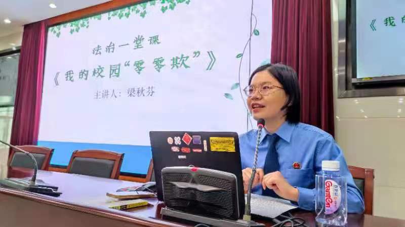 预防欺凌是多年来热议的话题。参观完毕后,第三检察部副主任梁秋芬在会议室为队员带来了一堂反欺凌主题的法治微课。梁主任从热门的新闻事件说起,结合法律法规、真实案例、电影片段,严肃地指出“学生欺凌绝不是熊孩子之间的开玩笑”,并通过原因分析给大家提出法律提示和忠告建议。在讲座中,针对队员提出的“孤立”问题,她提醒大家除了关注肢体、语言、网络等显而易见的欺凌外,更要关注一些隐性的“另类”欺凌行为,如社交矛盾、孤立排挤行为等,因为这些行为可能“看不见拳头”却能造成“摸得着的伤害”。