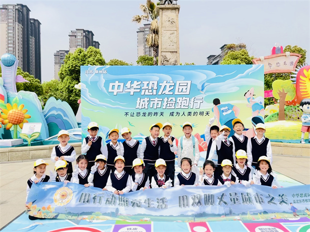 春风送暖,绿柳扶苏。为了呼吁大家关注自然万物与人类和谐共生,集青少年之力,唤醒公众环保意识,常州市新北区香槟湖小学一9班旭日中队的队员们参加了中华恐龙园发起的全国城市净塑捡跑万人行活动。4月22日上午9点,旭日中队的队员们在辅导员老师、家长的陪伴下准时到达指定地点集合,他们统一着装,精神抖擞,领好装备,蓄势待发。那一排整齐的小黄帽,成了当天活动现场一抹亮丽的风景。 在主持人的发令枪响后,本次捡跑活动正式拉开序幕。大家围绕中华恐龙园外围一圈,起点东经120观光塔→迪诺主街→河海路→龙业路→汉江路→龙汇路→终点返回中华恐龙园大门出口处,全程大概4公里。只见同学们手拿垃圾袋,眼观六路,见“圾”行事,将沿途路面、草地里的废纸屑、烟头、枯树叶、塑料瓶等垃圾“收入囊中”。精彩的环保互动打卡盖章环节更是激发了小朋友们的浓厚兴趣,让原本稍显“漫长”的路途变得轻松不少。 经过一个上午的辛勤劳动,沿途的地面都被收拾得干干净净,环境焕然一新。队员们虽然个个满脸通红,汗流浃背,但是没有一个人半途而废,大家全部顺利完成打卡任务,并获得了此次公益活动的纪念证书。本次公益捡跑活动既锻炼了队员们的身体,又美化了我们的环境,还磨炼了坚韧不拔的意志力。香槟湖小学旭日中队的队员们真正地做到了“用行动点亮生活,用脚步丈量城市之美”。如果说春天温柔了九州山河,那你们一定温柔了这个春天!