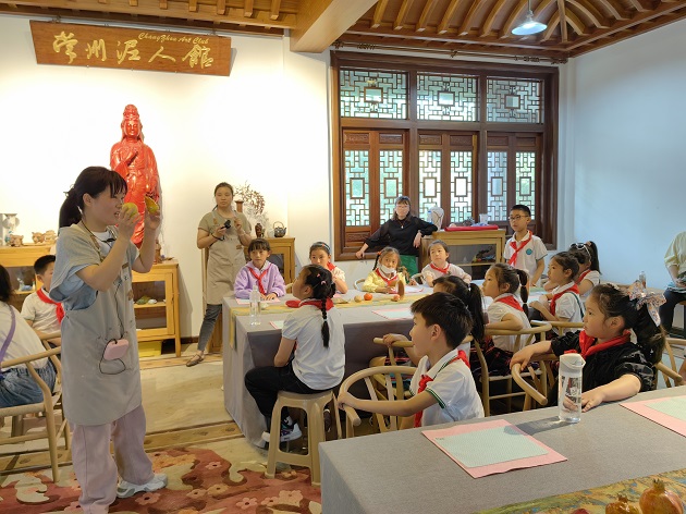 为感受泥塑非遗文化的魅力,争做非遗小传人。5月13日,春江中心小学的队员们来到常州泥人馆,开启非遗文化寻访之旅。迎着初夏暖而不燥的微风,踏入隐于闹市区内的黛瓦粉墙,循着曲径通幽的小路,在一式明清江南名居风格的巷内,队员们走进了常州泥人馆,在馆长的带领下,一起参观了馆内精美的手工作品,那一件件以假乱真、栩栩如生的作品深深吸引了队员们的眼球,让队员们啧啧称赞。