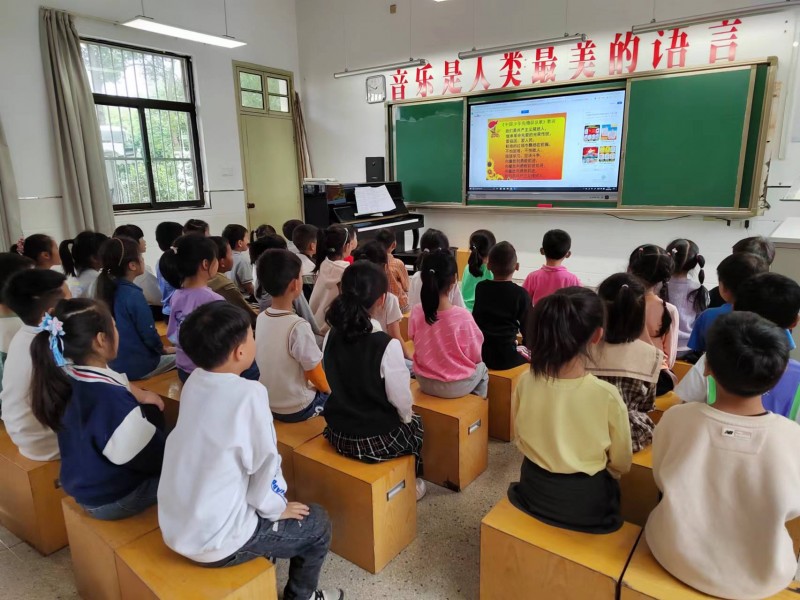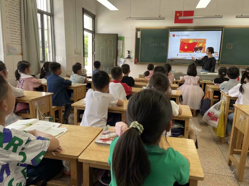 音乐课上,老师教孩子们齐唱队歌,歌声嘹亮,慷慨激昂;美术课上,黄老师手把手亲自教孩子们制作队旗,在小朋友一双双巧手的制作下,一面面鲜艳的少先队队旗诞生了;道法课上,老师们利用PPT,不仅让学生了解了少先队的历史、队旗队徽,还亲自指导孩子们学习佩戴红领巾,正确敬队礼;语文课上,老师们组织大家观看革命电影,讲述不同年代的先烈故事,孩子们听了无不为之动容,在幼小的心里种下了一颗颗红色的种子。