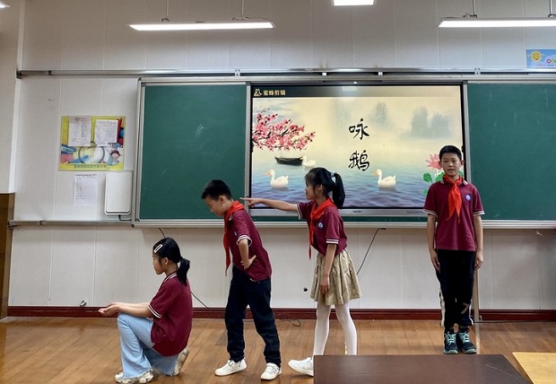 文化铸就自信,艺术创造活力。为进一步丰富校园文化生活,努力营造积极向上、健康多彩的校园文化氛围,常州市新北区万绥小学中高年级组于5月23日举行了经典诗词朗诵比赛。 经过四、六年级师生们的精心准备,本次比赛通过多种表演形式呈现了队员们的青春与活力。队员们身着统一的服饰倾情演出,他们的朗诵气势磅礴,诗情洋溢间,队员们的梦想由个人延伸至民族,由当下奔赴向未来,为民族魂、中国梦在这方天地的流淌奏响了序曲。 诵经典,学做人,让经典滋润人生,让书香伴随我们一路成长。校园因艺术而美丽,艺术因创造而多彩。本次朗诵比赛为队员们提供了展示才艺的平台,用艺术教育润泽了队员的心灵,愿优秀的民族精神在我们的血脉中流淌,让强大的文化自信支撑我们人格的脊梁。