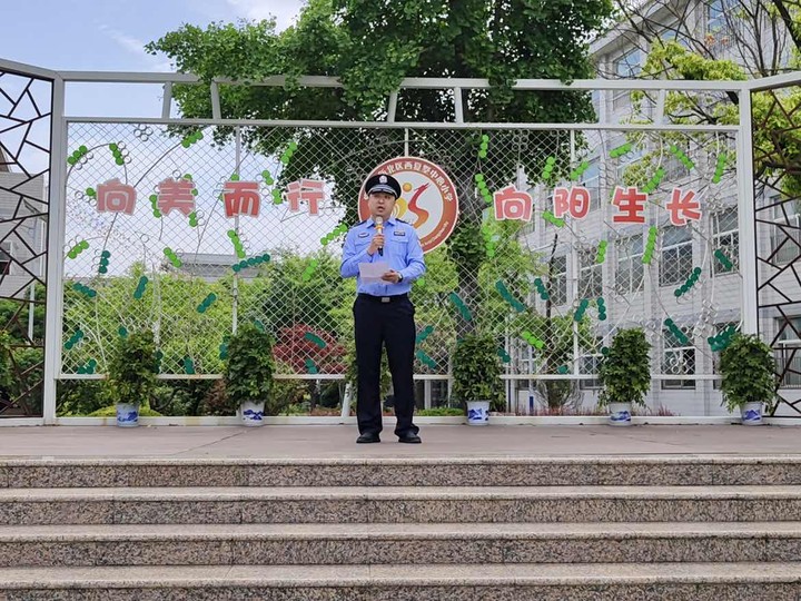 为深入学习党的二十大,增强少先队员法律意识,深化少先队员思想道德建设,构建文明和谐校园,5月8日上午,西夏墅中心小学举行了“与法同行 快乐成长”为主题的法制进校园活动。本次活动邀请了西夏墅派出所王所长全程参与。