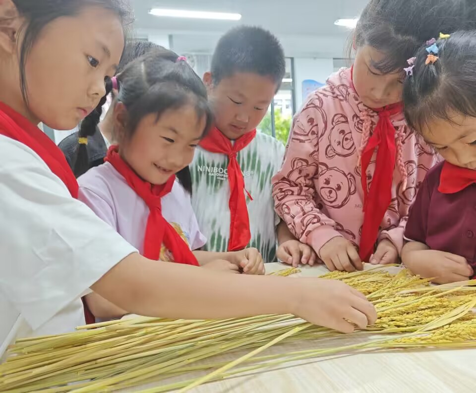 品人间烟火 尝生活百味。俗话说开门七件事,柴米油盐酱醋茶。《说文解字》中说,“米”就是谷物成熟的米仁,像围着穗梗的众多籽粒。大米是一种常见的食物,和生活息息相关。辅导员老师带着队员们充分认识大米。 古代的稻谷,是带着稻壳储存的,人们需要煮饭的时候,就把稻谷倒在一个石臼里面,用木杵捣,让米仁跟稻壳分离,这一劳动过程就叫“舂米”。到了现在,稻谷被收割下来后,就要及时脱粒,将谷粒和茎秆分离,脱粒后的谷粒,需要及时晒干。用机器将谷粒的壳皮去掉,再筛掉杂质,才能得到一颗颗洁白的大米。 大米不仅仅可以做美味佳肴,还可以做成艺术品,巧手龙娃再次上线们利用课余时间,动手画一画,盘一盘,贴一贴,一幅幅精美的作品就诞生。一粥一饭当思来之不易,光盘行动引领新食尚,唱响节约之风,从爱惜每一粒米开始。
