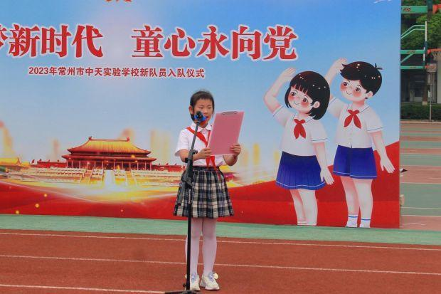火红的队旗高高飘扬, 指引我们前进的方向; 鲜艳的红领巾系满理想, 载着我们扬帆起航! 为教育学生继承和发扬中国少年先锋队的光荣传统,培养学生健康向上、积极进取的精神,近日,常州市中天实验学校举行“逐梦新时代 童心永向党”少先队新队员入队仪式,为少先队组织增添新鲜血液! 队前教育 准备充分 为了在预备队员心中埋下一颗颗“红色”的种子,各班组织开展了丰富多彩的队前教育活动,让预备队员们更加深入地了解了中国少年先锋队的基本知识,达到了“六知、六会、一做”的标准。