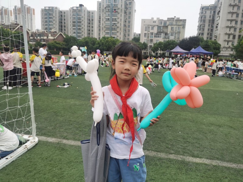 清风徐来,甜而不燥。六月的第一天,空气中弥漫着快乐的味道,这是一个特别的日子,一个属于所有儿童的日子。薛实小一年级的队员们正用他们的方式,庆祝这个不一样的儿童节:爱心义卖——做一件好事,为加入少先队的献礼。 为了义卖活动能够顺利开展,辅导员老师们提前两周便做好精心筹划,与队员们一起制作精美的卖牌、价签、爱心捐款箱……。队员们纷纷把自己闲置的书籍、玩具统统贡献出来。义卖如期进行,老师和家委们早早地就布置摊位。绿茵操场即刻变身繁荣集市:各个摊位,琳琅满目,玩具、书籍、小物件,应有尽有。除此之外:还有一些别出心裁的趣味游乐项目:如科学小制作、端午斗蛋、赛龙舟和套圈等。