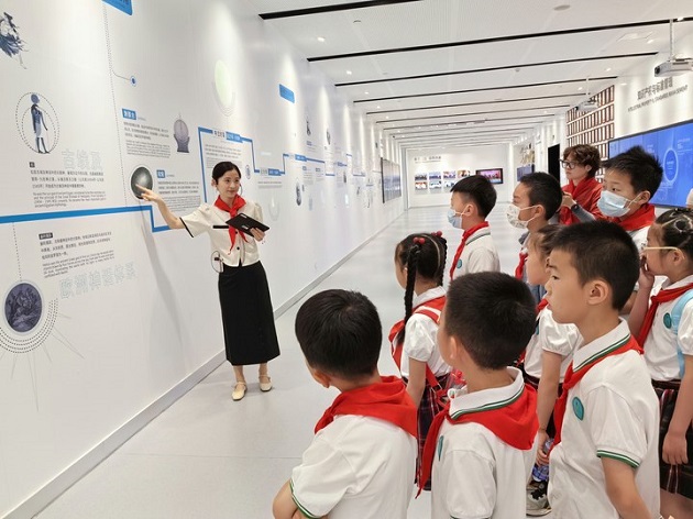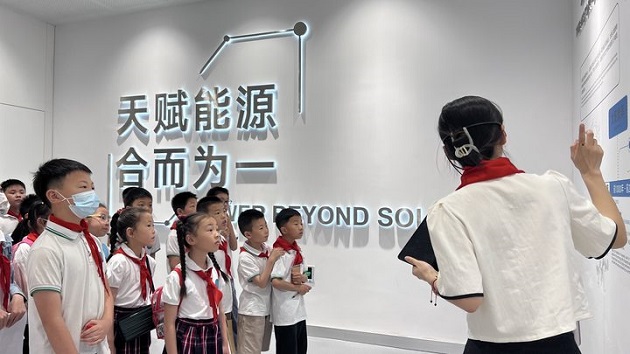 队员们从分享自己熟知的后羿射日、夸父逐日的神话故事开始,开启了太阳能资源利用的研学之旅。通过讲解员专业的讲解,队员们了解到了从远古时期、近世时期、现代时期以及未来人们对于太阳能资源的利用与创造,在队员们专注的神情中,人与自然和谐共生的理念悄然生根。