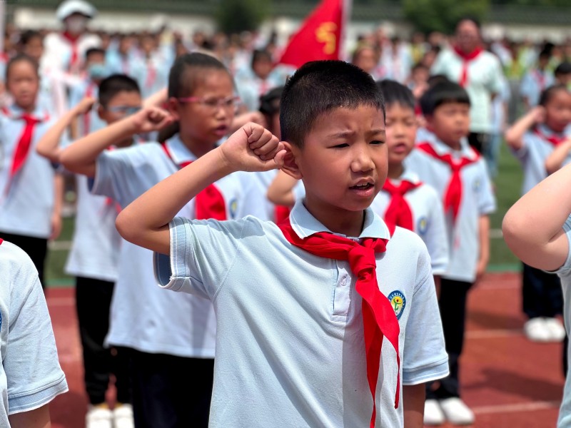 六月的天气分外美好,六月的队旗高高飘扬。6月1日上午,新北区吕墅小学举行了2022级第一批少先队员入队仪式。 迈着铿锵有力的步伐,护旗手们护卫着象征光荣与使命的中国少年先锋队队旗,雄赳赳气昂昂地向我们走来,展现出了少年奋进的精神面貌。在队旗下,全体师生高唱《中国少年先锋队队歌》,嘹亮的歌声中表达着队员们对少先队组织的热爱。