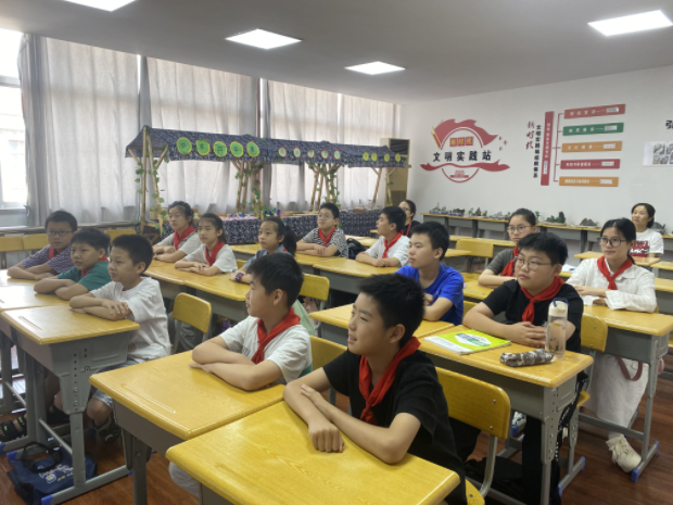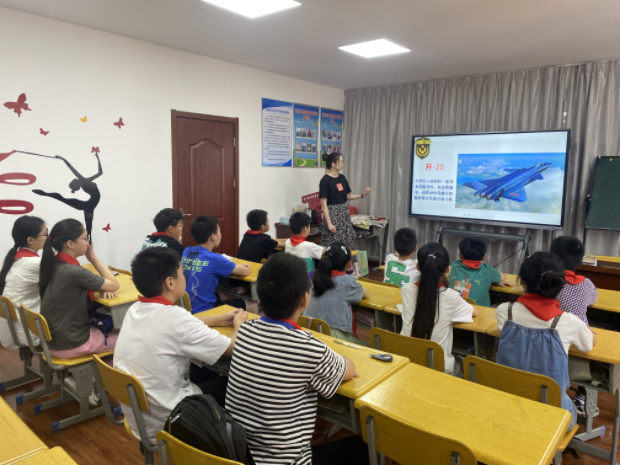 为深入学习贯彻党的二十大精神,让新时代文明实践活动更有情怀、更有温度,7月11日,“书香满新北,阅读伴成长”活动走进孟城社区校外教育辅导站。书式童年阅读研究中心的宋姣姣老师给同学们带来了精彩的童书作品《铁血战鹰队》,来自孟河中心小学的十余名学生参加了本次活动。